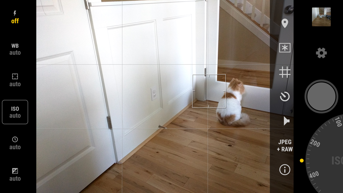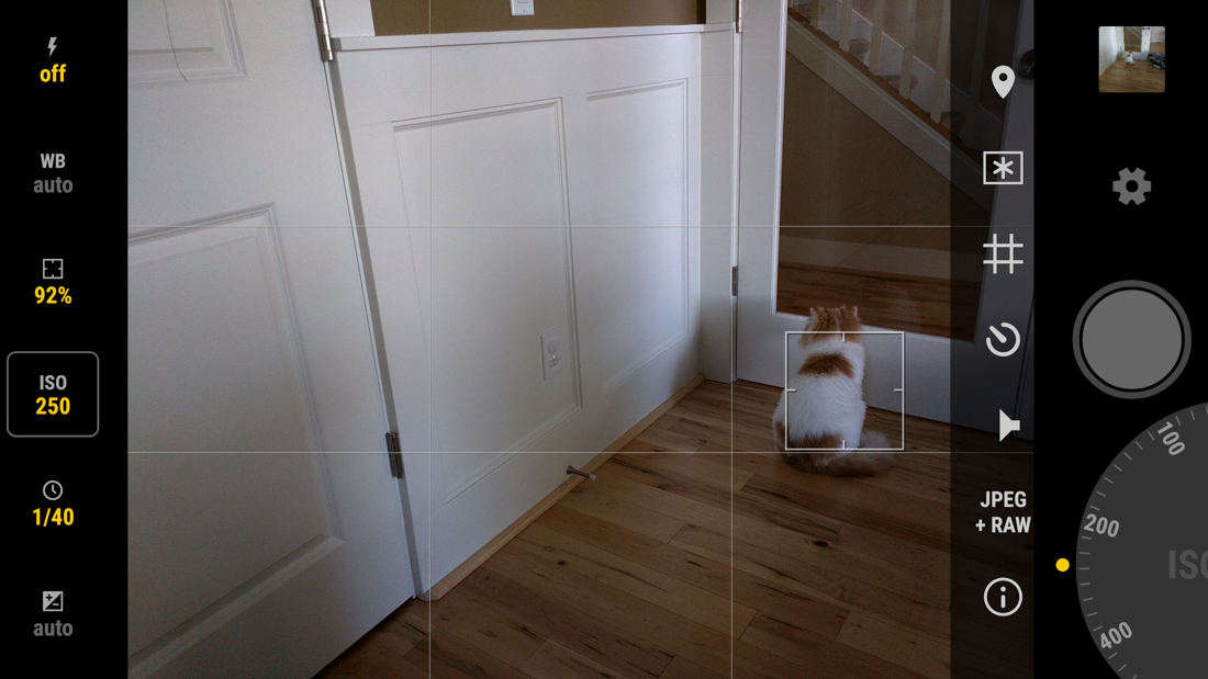 With Manual Camera, you get a very clean and accessible layout, with shortcuts for flash, white balance, focus, ISO, shutter speed and exposure on the left side. On the right, you have gallery and settings shortcuts, a shutter button, and then a dial that lets you quickly control all of the settings from the left side. The camera starts in auto mode, which you should have no problems shooting in, but if you want to start tweaking the manual focus or ISO or shutter speed, you can do that with a tap on a button and spin on the dial. It’s pretty easy to figure out.